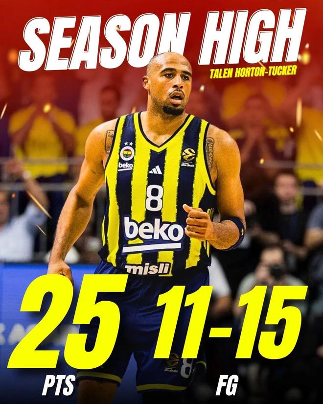 小塔克在歐洲聯賽上演NBA海報級驚天隔扣。