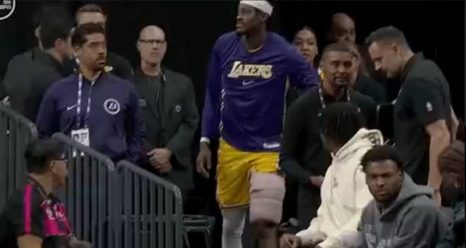 湖人2020年總冠軍內(nèi)線、名人堂名宿霍華德到場(chǎng)觀戰(zhàn)。